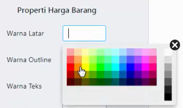 Berikut adalah contoh tampilan detail saat memilih Warna Latar pada Objek Properti Harga Barang.