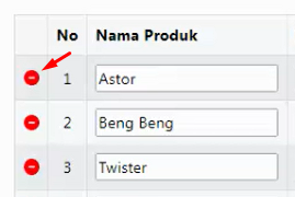 Untuk menghapus satu produk pada tabel produk, klik tombol delete seperti pada gambar berikut.