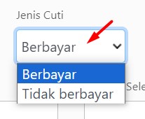 Pilihan Izin AKAN MEMPENGARUHI GAJI. - Cuti: Untuk mendaftarkan permohonan Cuti karyawan.