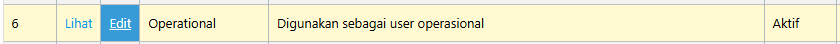 Sebelum menggunakan fitur Ai Agent, pastikan user yang akan mengoperasikan sudah diberikan hak akses. Caranya, masuk ke menu Administrator > User > Tipe User. Kemudian pilih tipe user yang ingin di berikan hak akses, klik Edit.