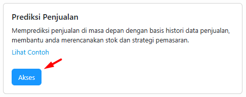 Prediksi Penjualan membantu Anda memprediksi penjualan di masa depan dengan menganalisis data penjualan historis. Dengan fitur ini, Anda dapat merencanakan strategi pemasaran dan manajemen stok dengan lebih akurat. Klik tombol "Akses" untuk melihat contoh prediksi dan grafik yang mudah dipahami.