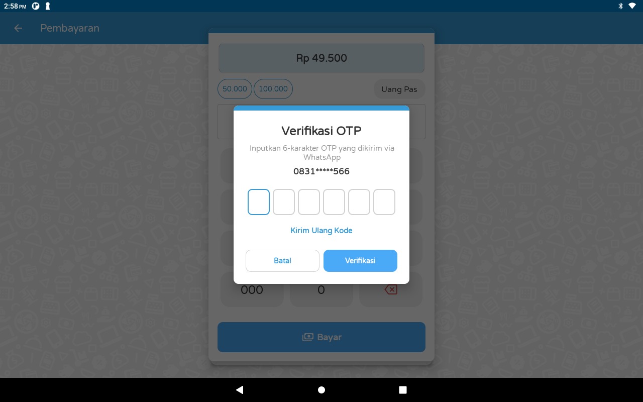 *Proses penginputan Kode OTP akan terpop-up atau muncul saat penjualan akan ditutup