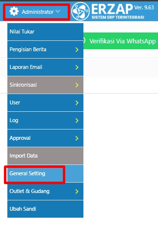 2. Masuk ke Menu Administrator, lalu pilih General Setting
