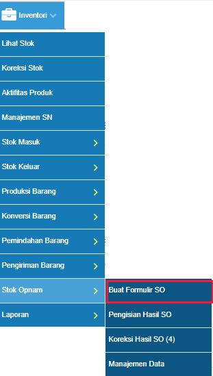 - Akses Inventory > Stock Opnam > Buat Formulir SO