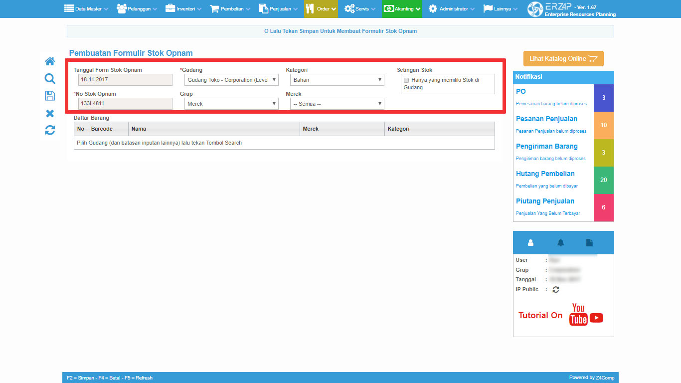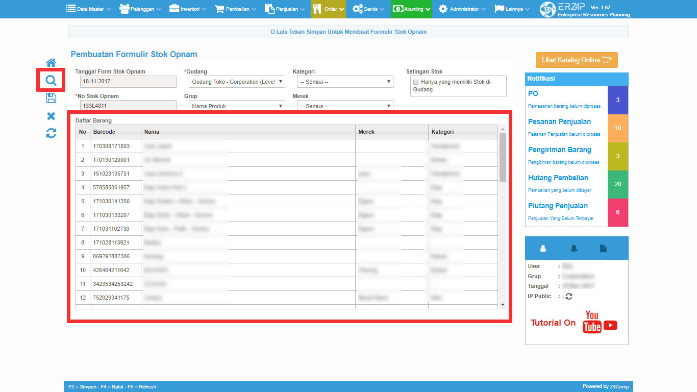 Kegiatan stock Opnam merupakan kegiatan yang cukup menyita waktu karena pengguna akan benar-benar terjun secara langsung memeriksa keadaan serta kondisi persediaan barang perusahaan Anda. Namun Anda tidak perlu khawatir karena Erzap meyediakan Fitur Stock Opnam yang dapat membantu penyesuaian antara stok fisik dan stok sistem.