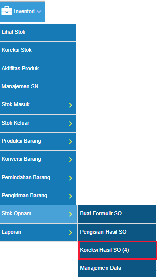 Perlu diketahui bahwa Koreksi Hasil SO memiliki fungsi mengkonfirmasi hasil akhir dari SO dan data stok pada Koreksi Hasil SO ini akan merubah Stok Produk Anda pada Sistem.