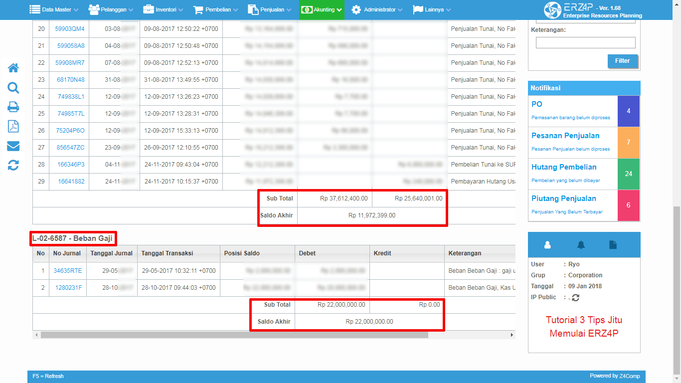 Sekian tutorial "Melihat Laporan Buku Besar" dari kami dan jika dirasa ada pertanyaan lebih lanjut anda bisa langsung menghubungi kami pada kontak yang telah disediakan pada halaman ERZ4P, Terima Kasih.