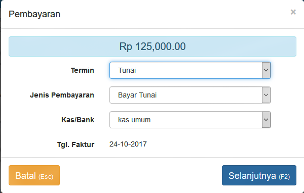 - Klik bayar untuk melanjutkan transaksi atau dengan mengklik tombol F2.