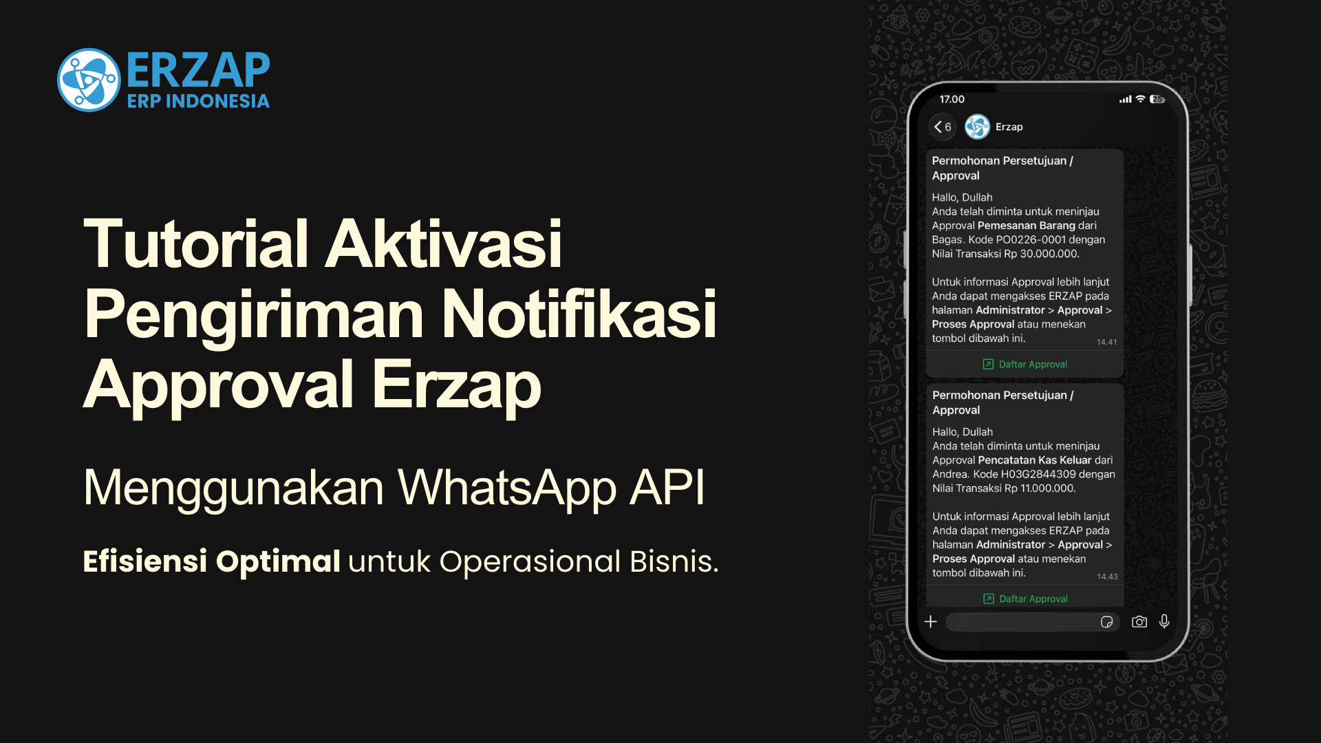 WhatsApp saat ini menjadi salah satu media komunikasi utama antara bisnis dan pelanggan. Untuk mendukung kebutuhan tersebut, ERZAP telah menyediakan fitur WhatsApp Cloud API yang dapat digunakan untuk mengirim notifikasi otomatis seperti OTP dan approval.
